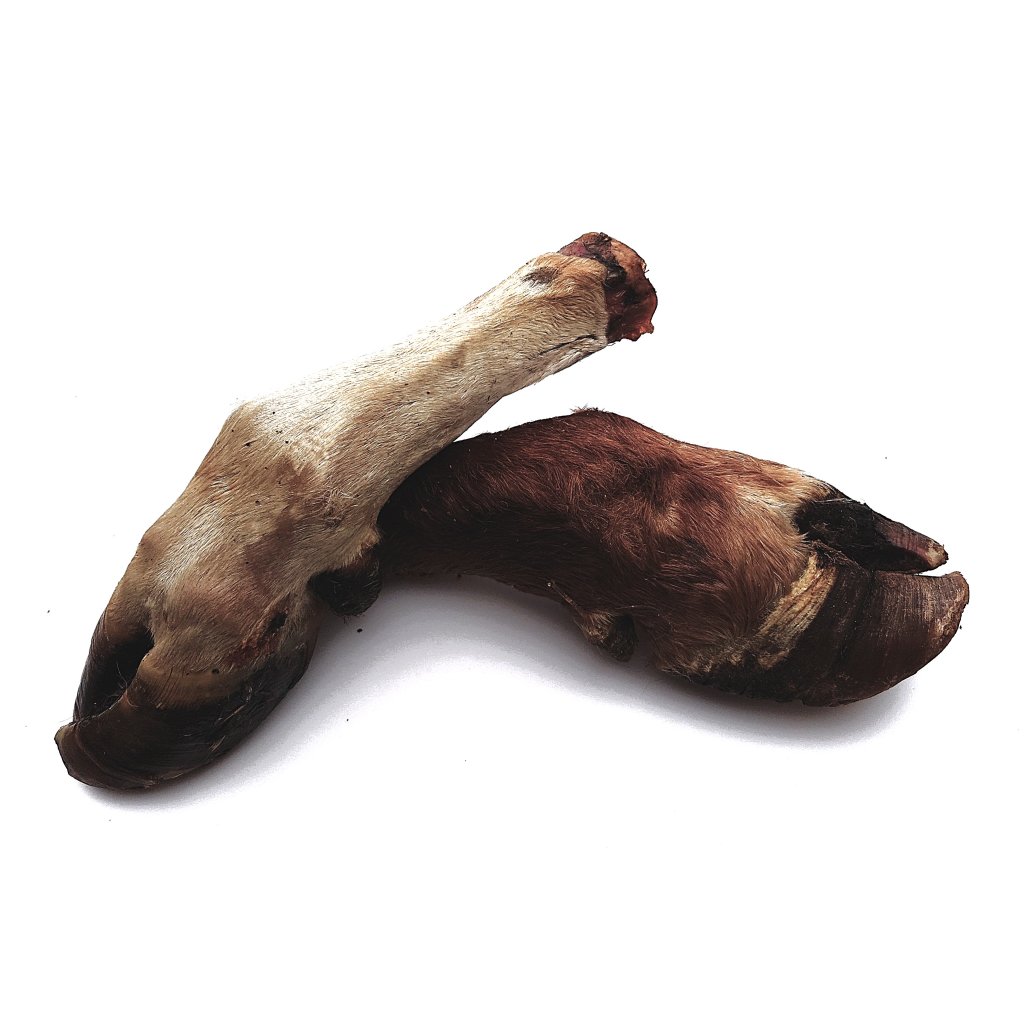Celá hovězí noha je pouze usušená, je to 100% přírodní, velmi houževnatý a zdravý pamlsek, určený pro největší psí plemena. Jedná se o kompletní nohu včetně paznehtu, kostí, šlach, kloubů a vaziva, včetně kůže se srstí, obsahuje minerální látky, zejména vápník a fosfor a také bílkovinu kolagen. Jejím kousáním se pes nejenom zabaví na dlouhou dobu, ale také do sebe dostane spoustu látek důležitých pro celý organizmus, vyčistí si chrup a samozřejmě posiluje žvýkací svaly, kousání tohoto pamlsku pomáhá udržovat zdravé dásně, srst z nohy vyčistí celé trávicí ústrojí pejska.