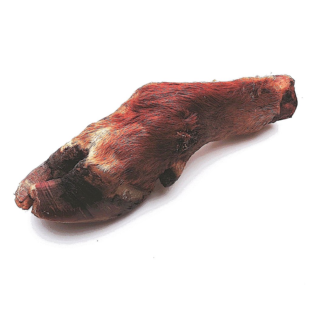Větší pamlsek na kousání už snad ani být nemůže!!! Obří hovězí noha, úplně celá - pazneht, kosti, šlachy, kůže i se srstí - to je dobrota, která i největšímu kousači s hodně velkými zuby vydrží fakt dlouho!!!