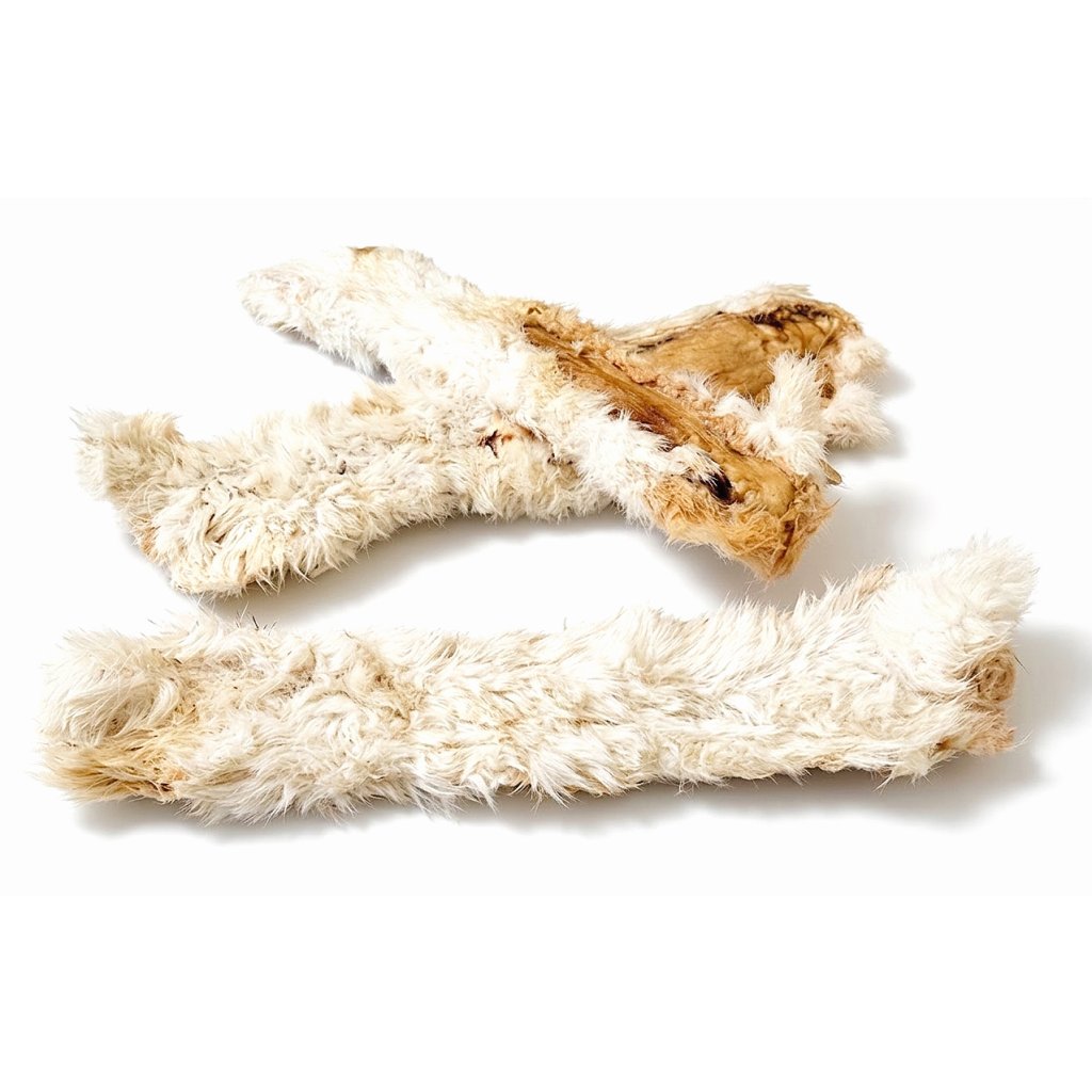 MIMOŘÁDNÝ PAMLSEK - dlouhé, široké pásy sušené králičí kůže se SRSTÍ jsou dalším pamlskem, který je vhodný taky pro pejsky, kteří trpí alergiemi nebo mají citlivější zažívání. Tento chlupatý pamlsek se o zdravé a zábavné kousání vašeho parťáka určitě postará